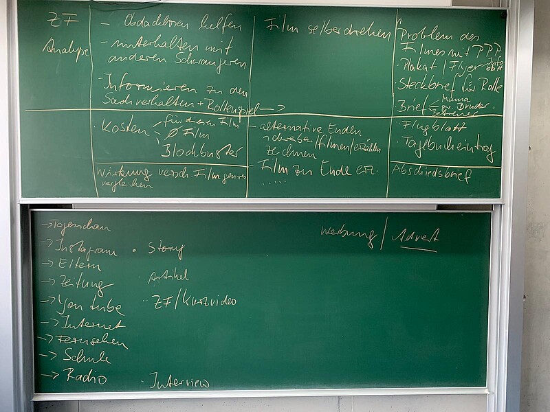 Praktische Schwerpunkte: künstlerisches Projekt, Filmkritiken schreiben, Plakat- und Traileranalyse