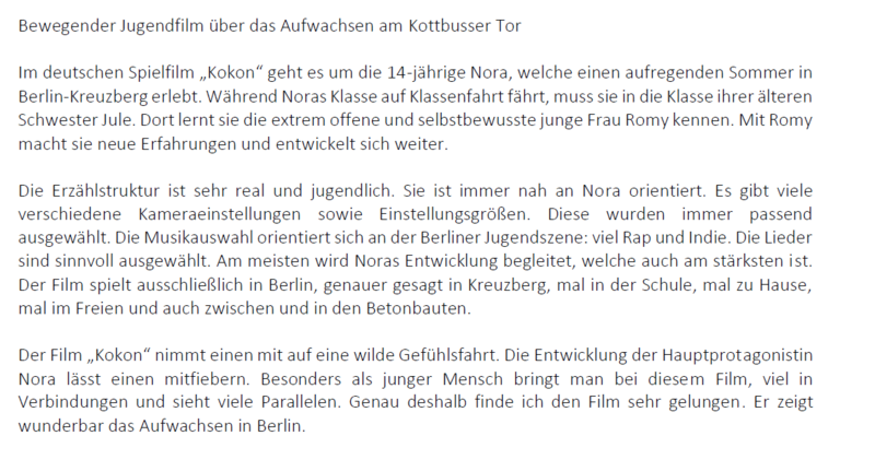 Hier finden sich die Projektberichte der Oberschulklassen, die 2020 am Berlinale-Schulprojekt teilgenommen haben: